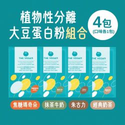 THE VEGAN樂維根 植物性分離大豆蛋白粉組合 (經典奶茶, 朱古力, 抹茶牛奶, 焦糖瑪奇朵) 各1包【台灣製】